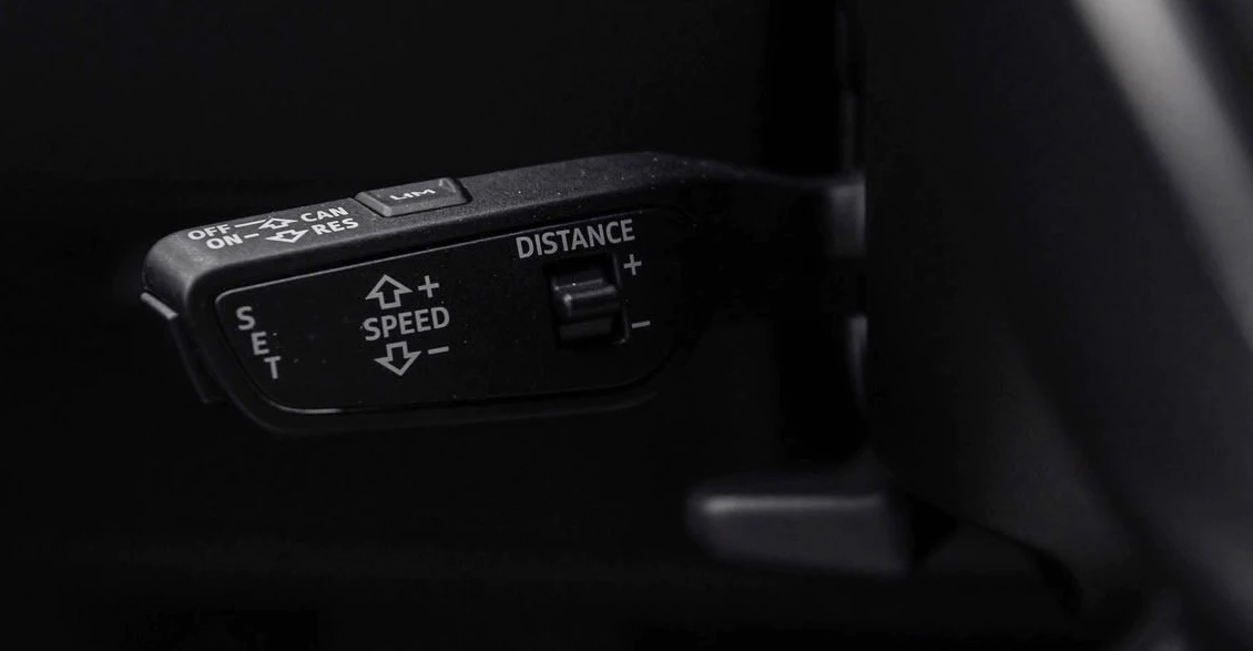 Speed is adjusted with pushing the lever up and down. You can control the distance to the car in front with the distance button. The lim button on top enable the speed limiter.