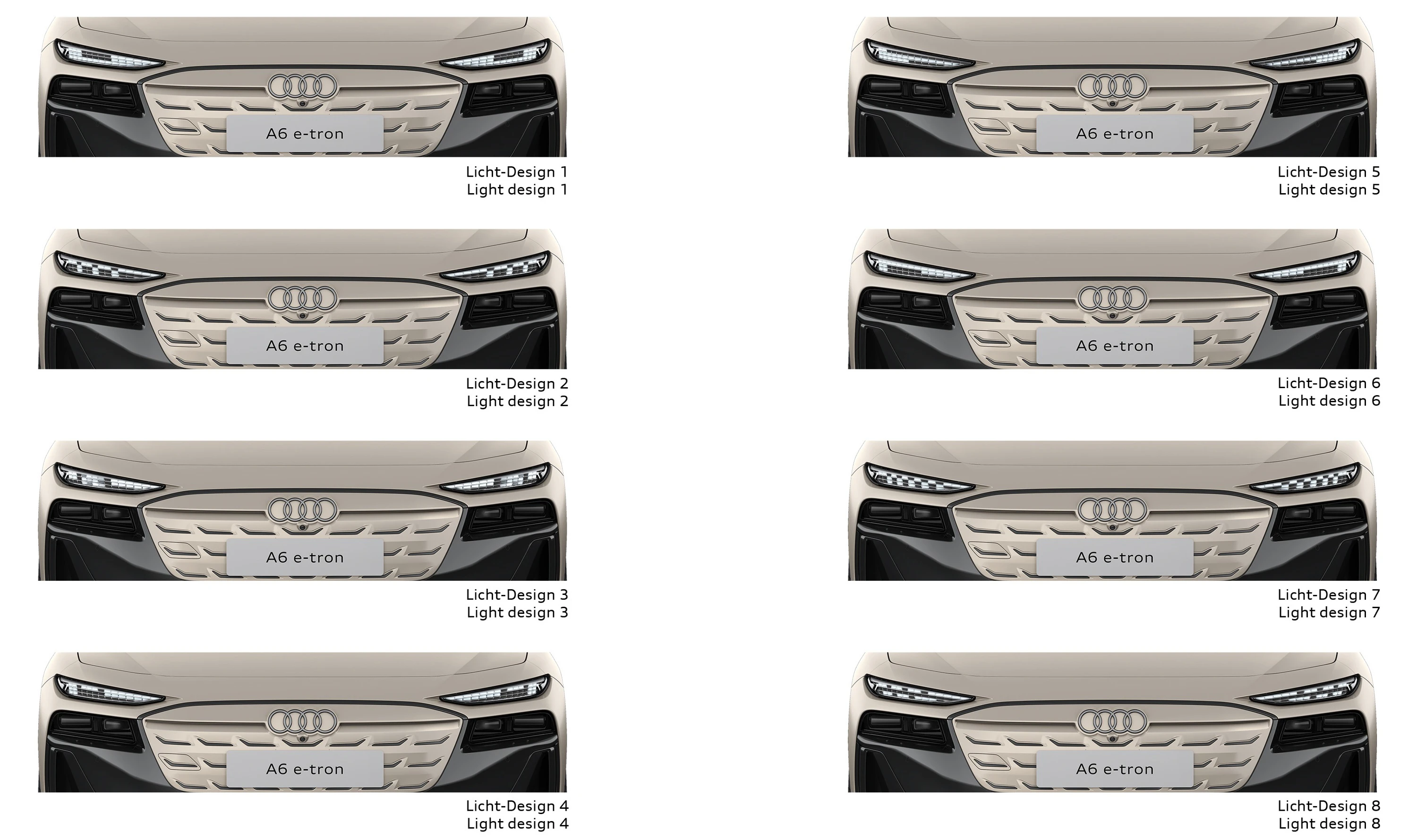 With up to eight digital light signatures for the headlights and rear lights, drivers can enjoy a new level of freedom in personalizing their A6 e-tron. Customers can select a signature in one of two ways, via the myAudi app or in the car via the MMI. Six additional signatures with a coming home/leaving home lighting scenario and the corresponding digital light signature are available through additional optional packages.