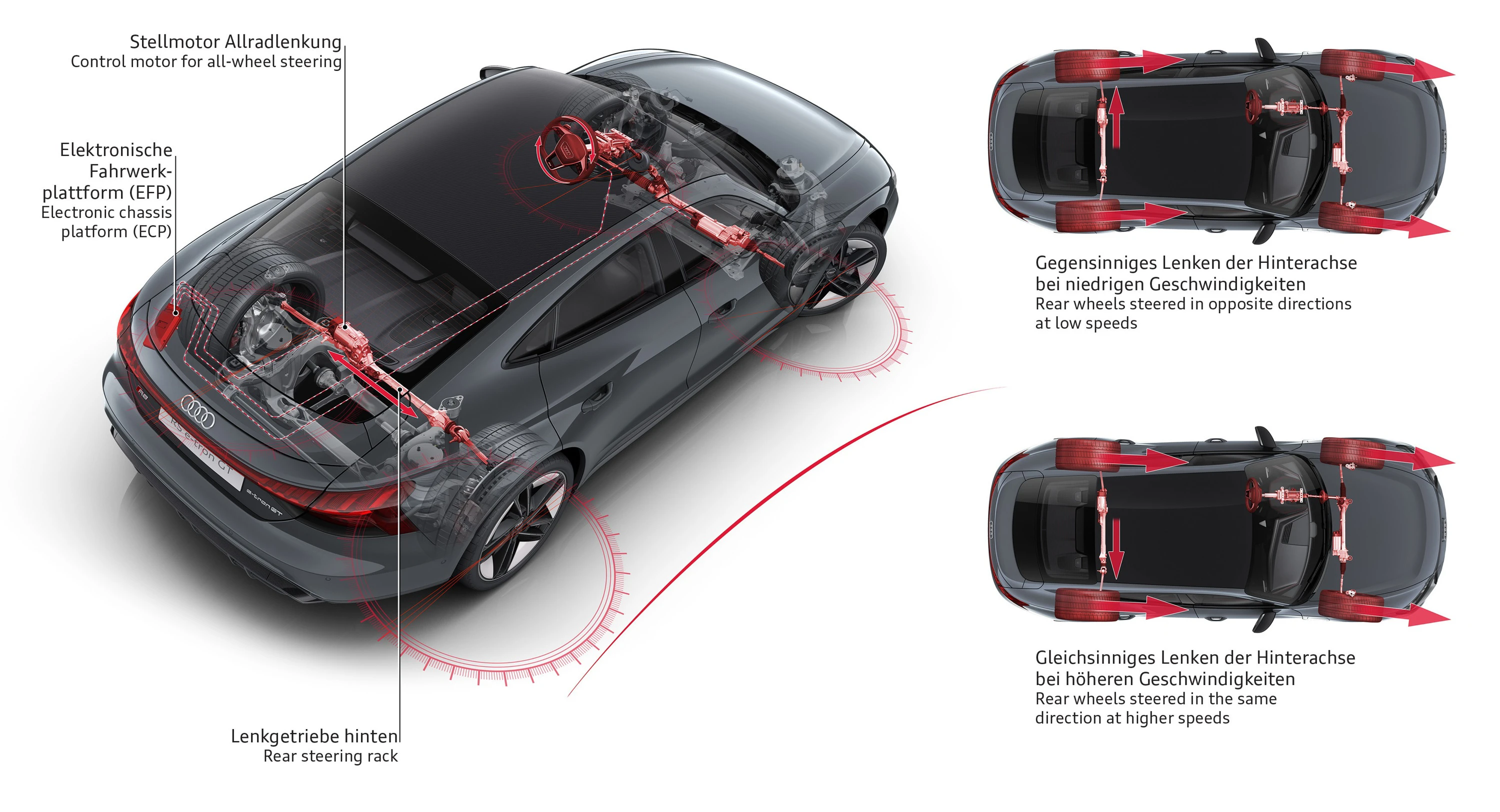 Animation: Audi RS e-tron GT – three-chamber air suspension and all-wheel steering