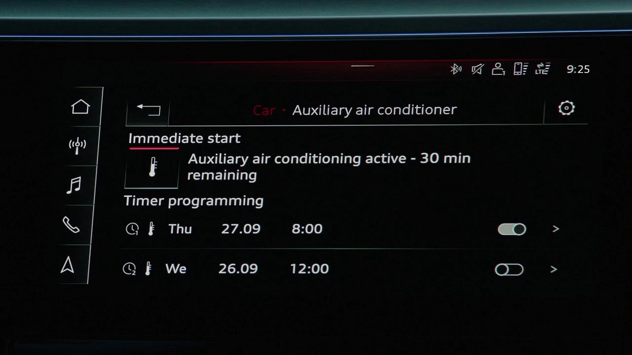 The auxiliary air conditioner can also be controlled by the myAudi app. This is useful when you need to heat or cool the car before using it.