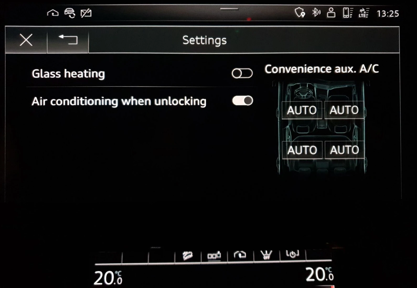 The auxiliary air conditioner can also be controlled by the myAudi app. This is useful when you need to heat or cool the car before using it.