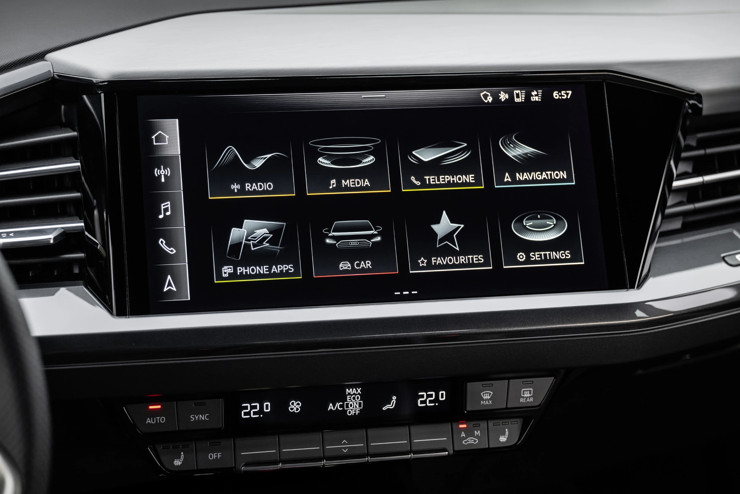 Audi Q4 e-tron comes with MMI Touch as standard. The MMI touch display with acoustic feedback has a 10.1-inch diagonal and a resolution of 1,540 x 720 pixels.