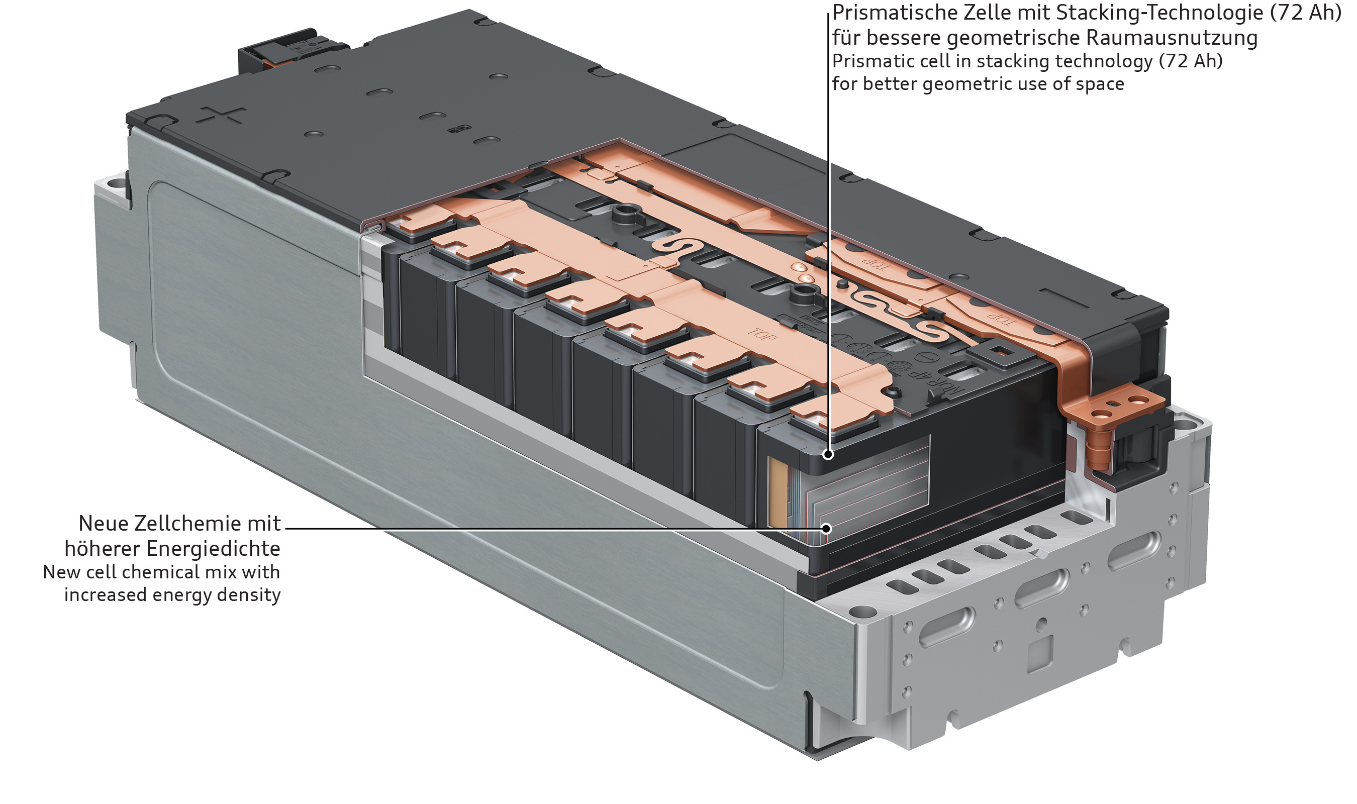 Audi/Volkswagen has a multi-vendor strategy on cells. That means that Audi uses different vendors of Lithium-ion cells for various batteries.