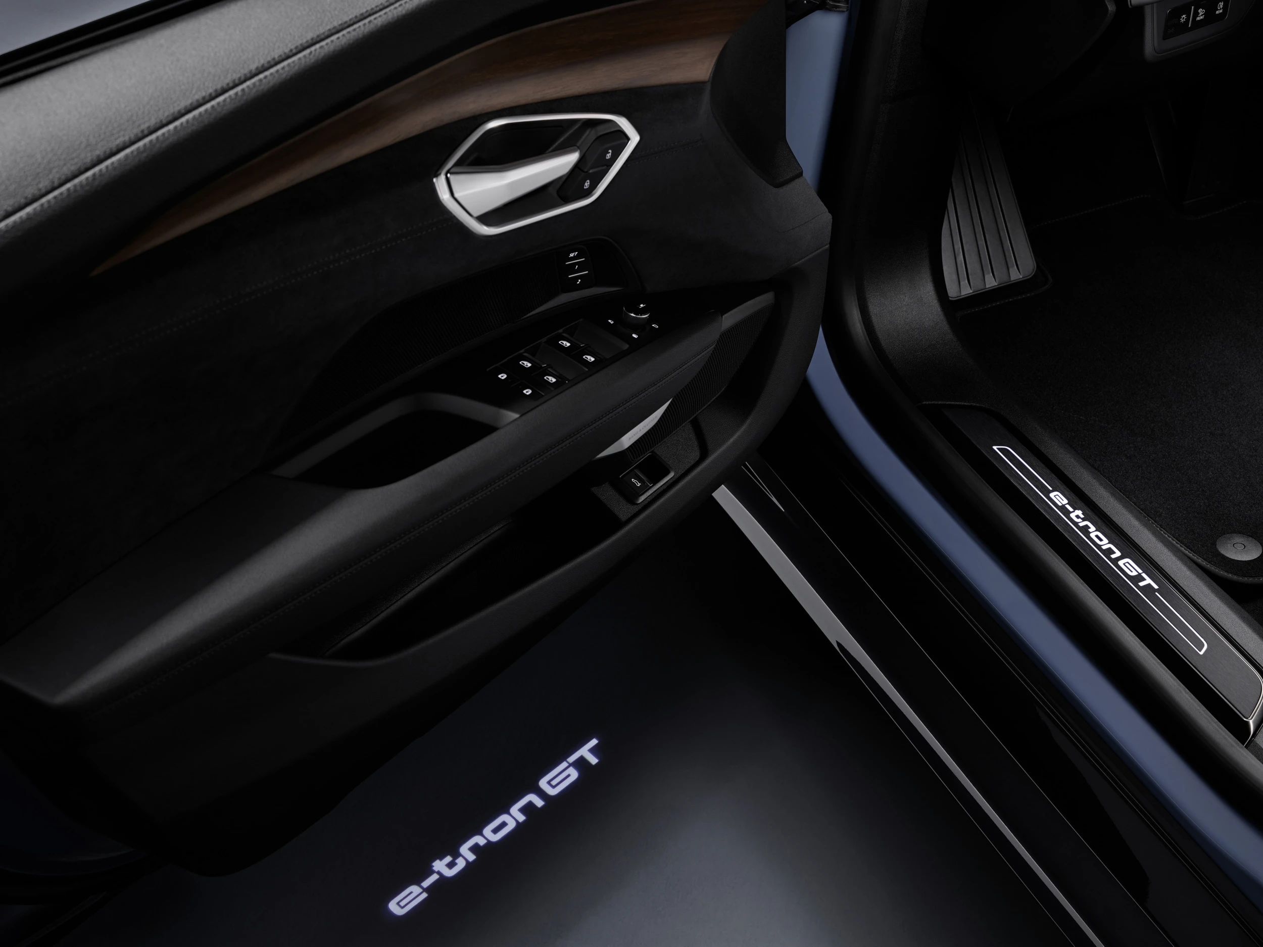 Du kan legge til kule innstegslys til e-tron GT-dørene.