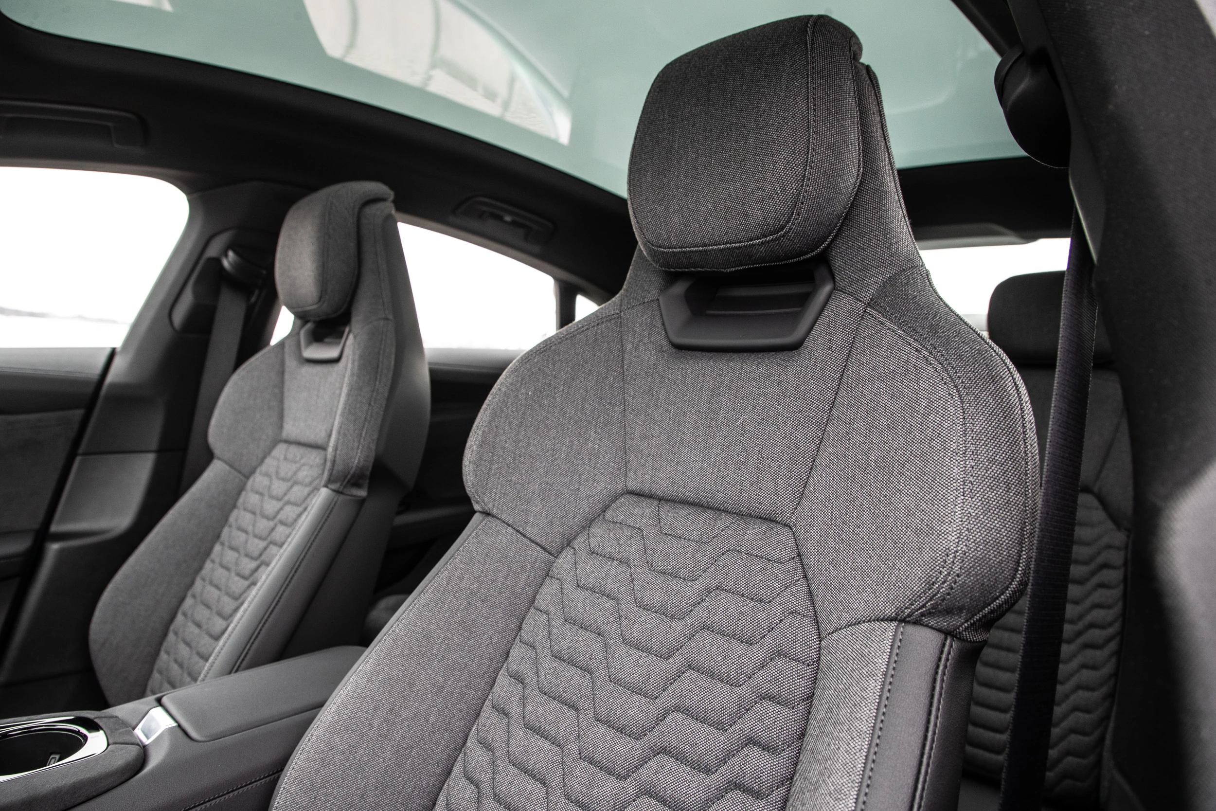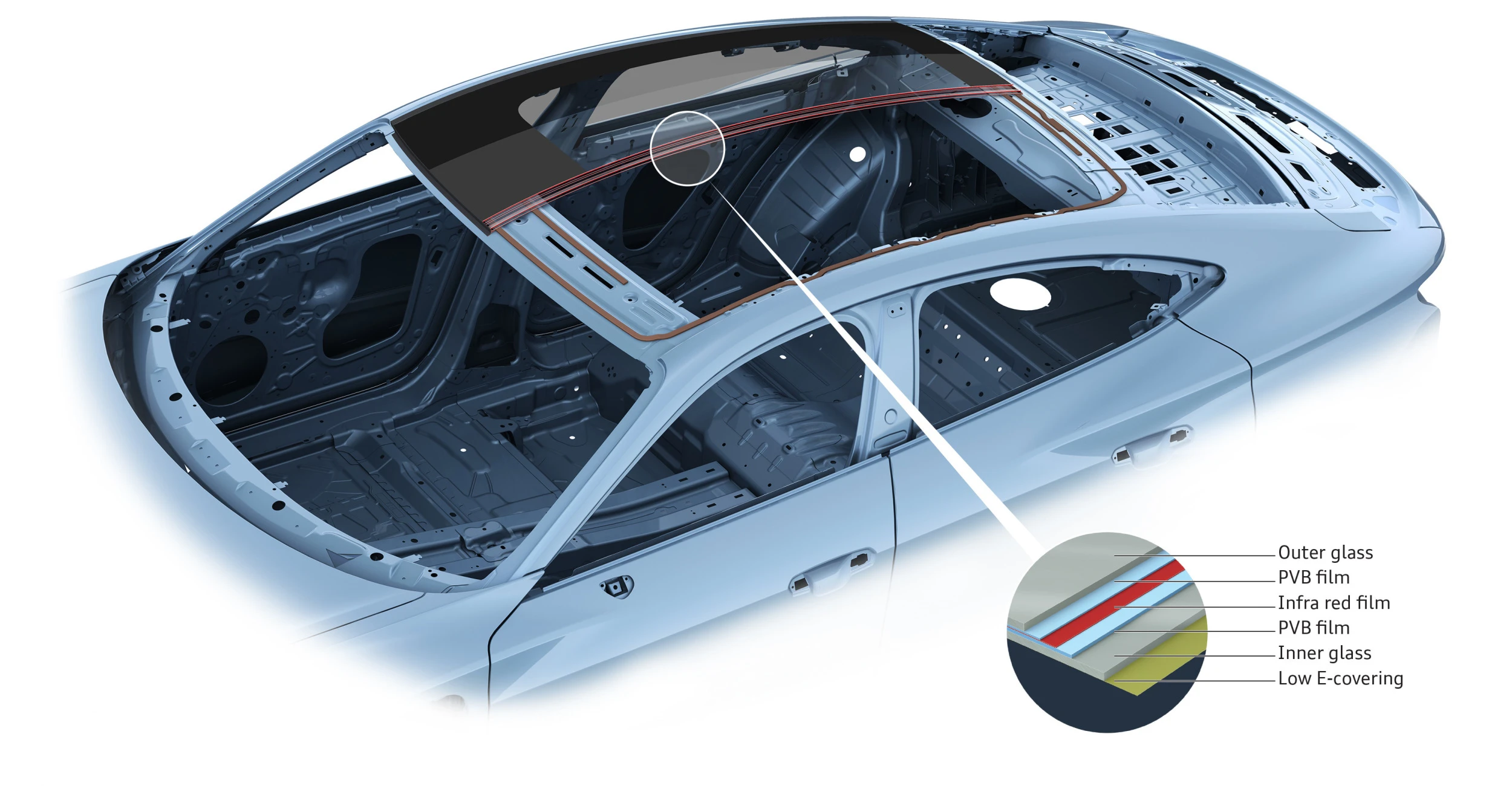 Karbonfiberforsterket plast, også kalt karbon, har lenge vært i bruk innen motorsporten. Her kommer det høyteknologiske materialets fordeler veldig tydelig frem. Komponenter av karbon er svært stabile og lette. Brukt på riktig sted kan en komponent av karbon redusere bilens totale vekt, i tillegg til å senke bilens tyngdepunkt, slik tilfellet er for karbontaket på Audi e-tron GT quattro. Dette betyr at bilens smidighet og dynamikk øker under sportslig kjøring. Karbontakets synlige fiberstruktur gir også en flott visuell effekt. Den sportslige designen og de tynne karbonfibrene i plasten gjenspeiler den svært høye kvaliteten.
