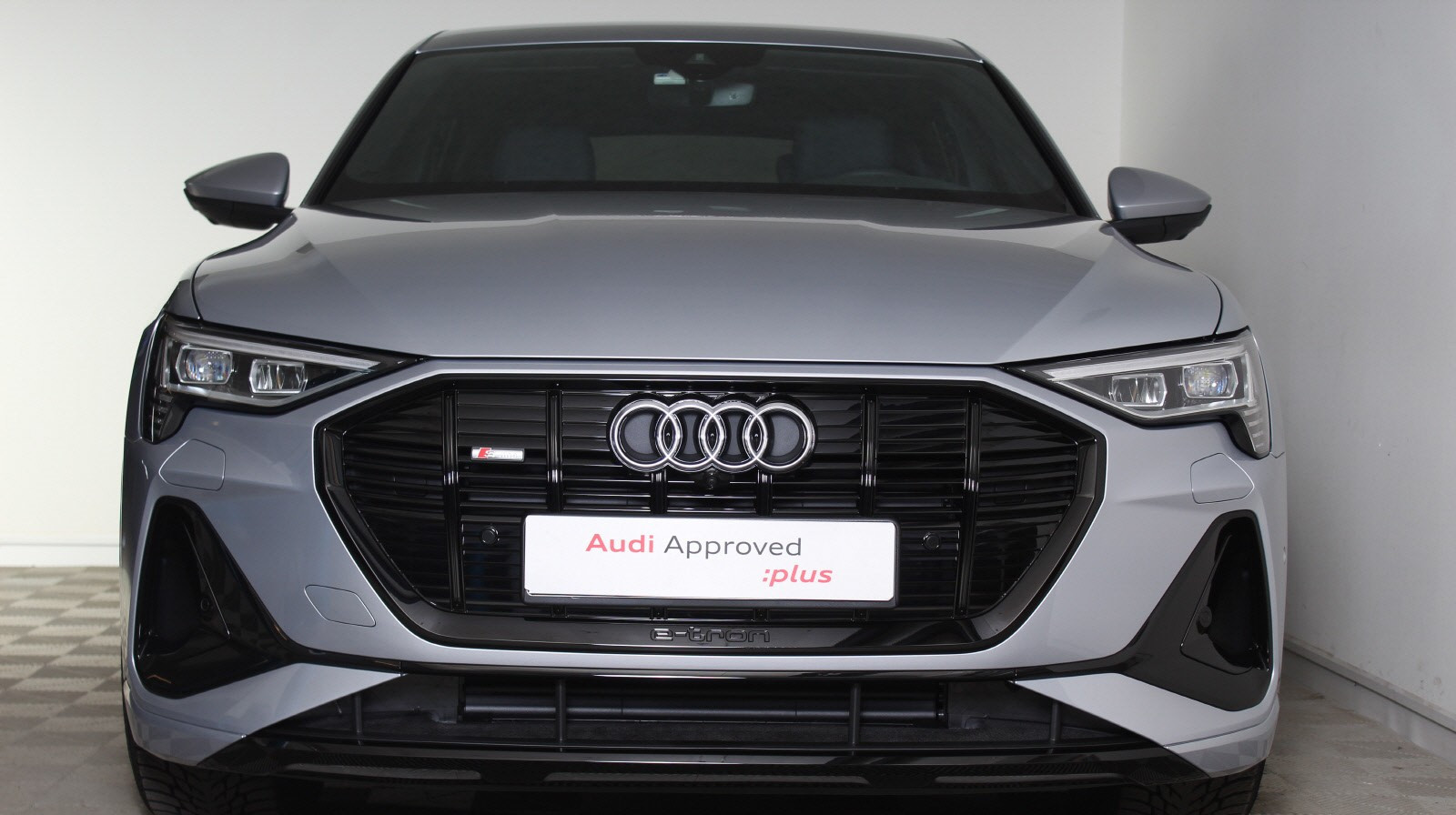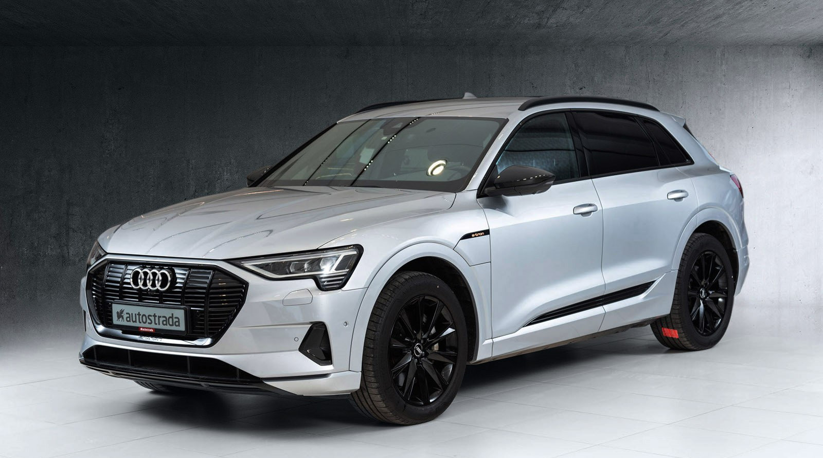 Audi e-tron kan leveres med standard eller sort optikkpakke. Den sorte optikkpakken inneholder glanssort front, skinner og vindusrammer.