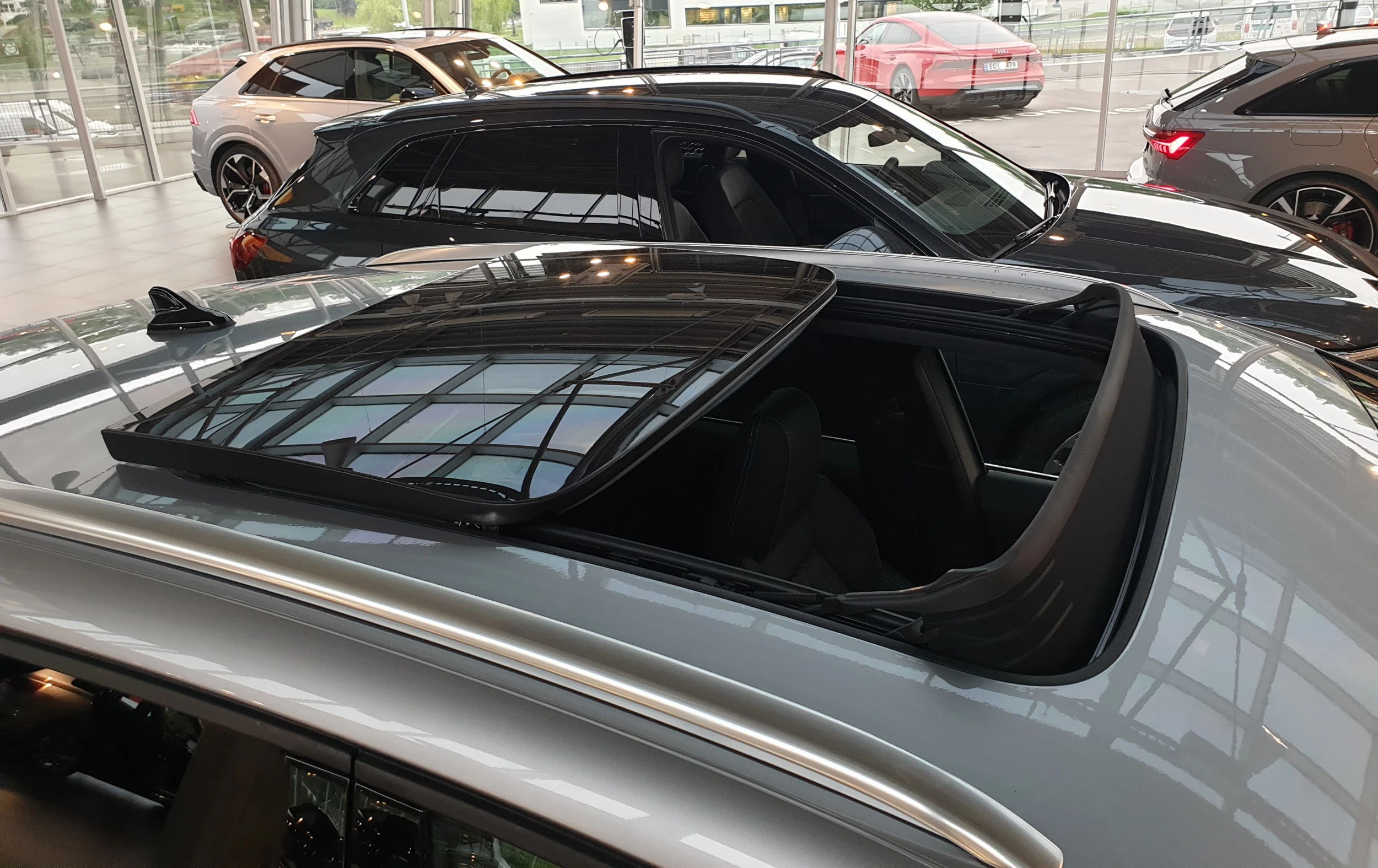 The roof can be openeded. In addition to give Audi e-tron a cooler and more exclusive look it gives more light in to the car and better view from the inside.