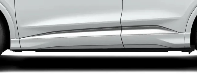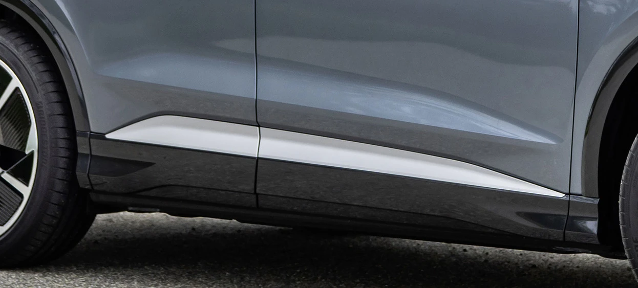 Audi Q4 e-tron kan leveres med s-line eksteriørpakke. S-line eksteriørpakken inneholder ekstra styling elementer.