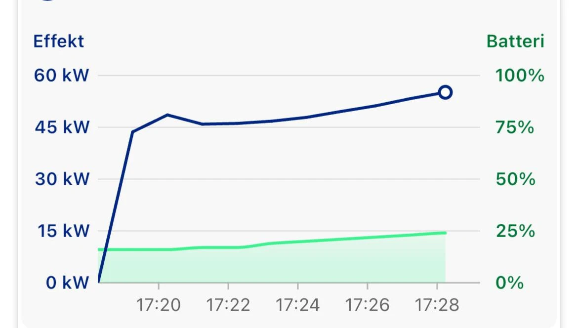 Først. Hva er forventet ladehastighet? Under optimale forhold vil ladekurven se slik ut.