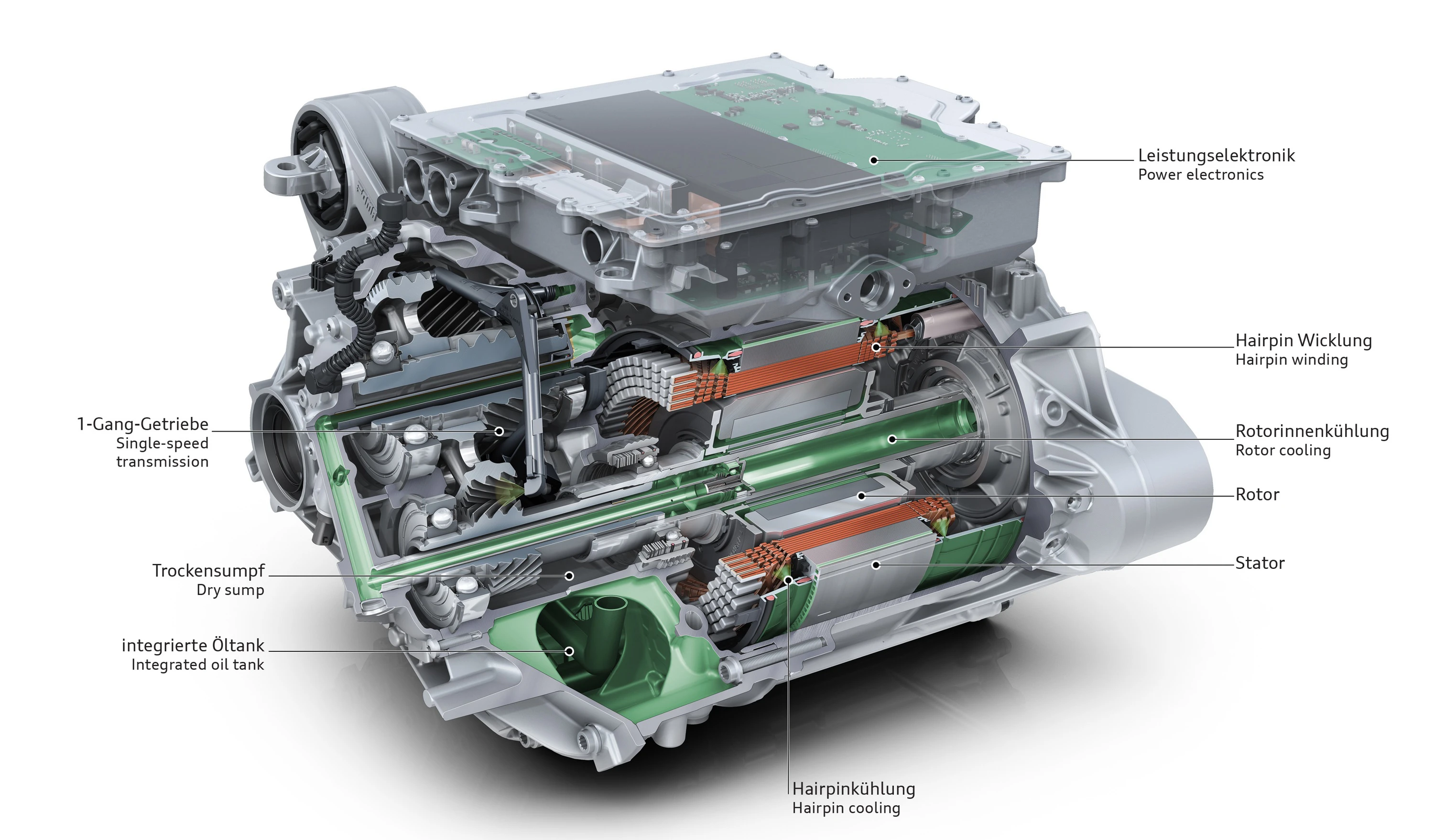 De nyutviklede elektriske motorene krever også rundt 30 prosent mindre installasjonsplass enn de som tidligere ble brukt i Audis elektrisk drevne modeller. Det nye designet har også gjort det mulig å redusere vekten med rundt 20 prosent.