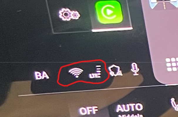Man skal følge med på disse symbolene. Her vises symbolen til venstre i ringen at bilen bruker en wifi uplink.