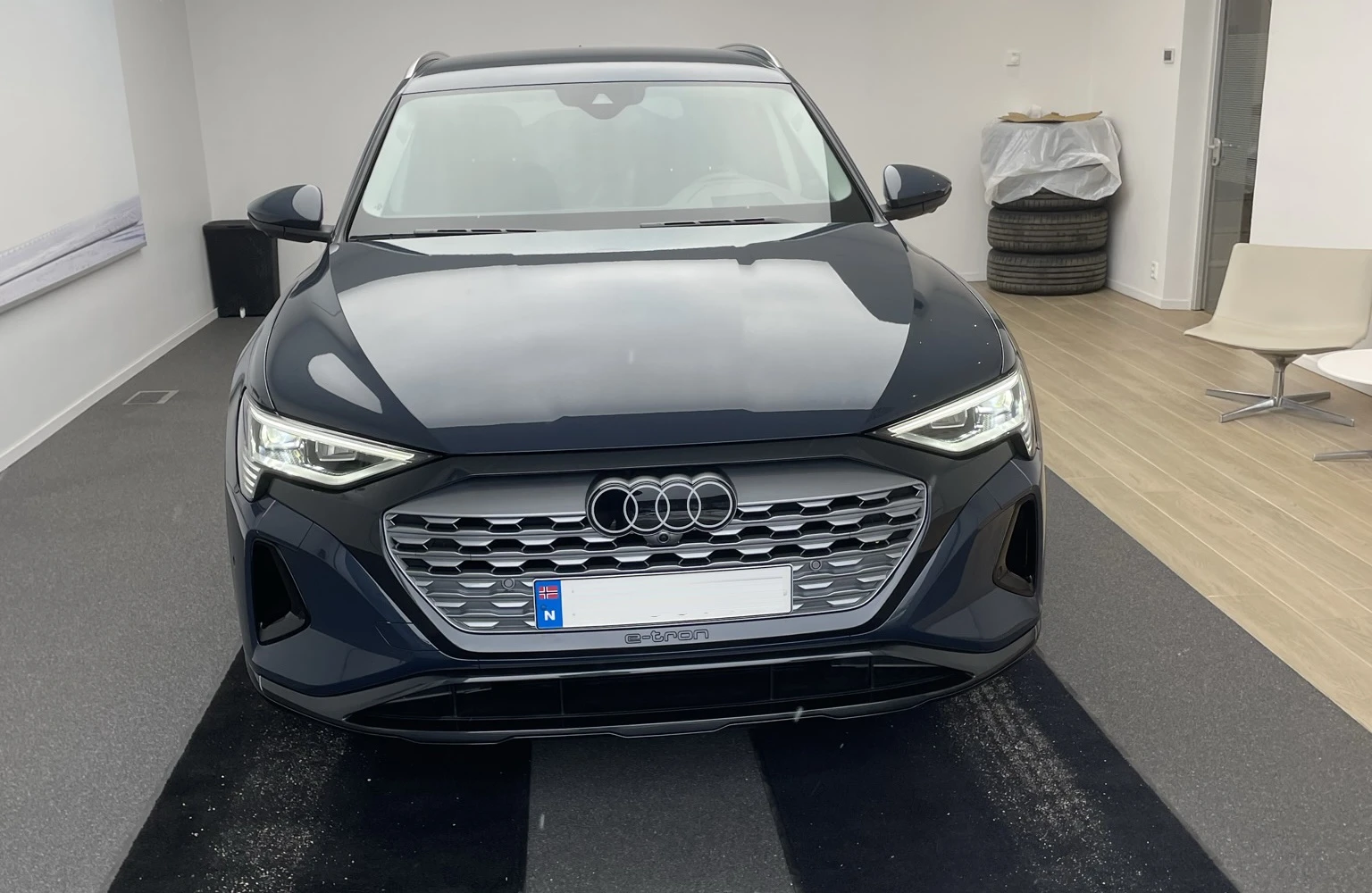 Audi e-tron 55 Sportback S-line i isbrehvit med sort optikk