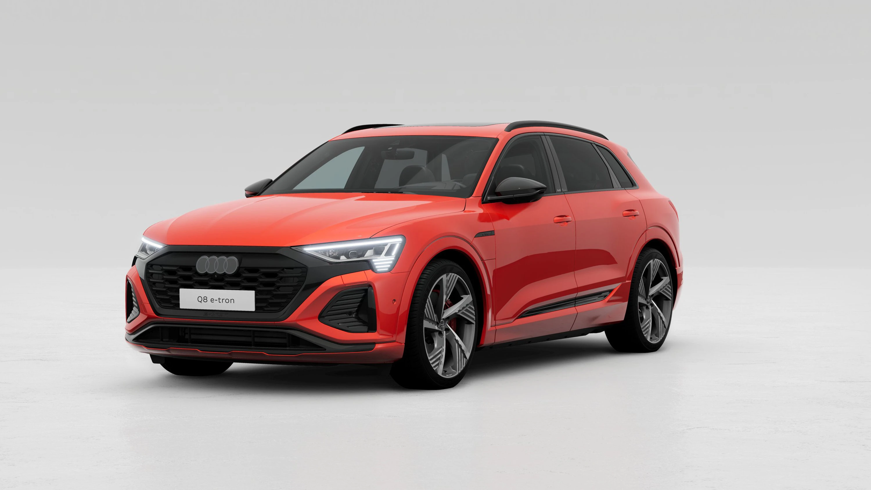 Audi Q8 e-tron S-line i soneirarød med sort optikk