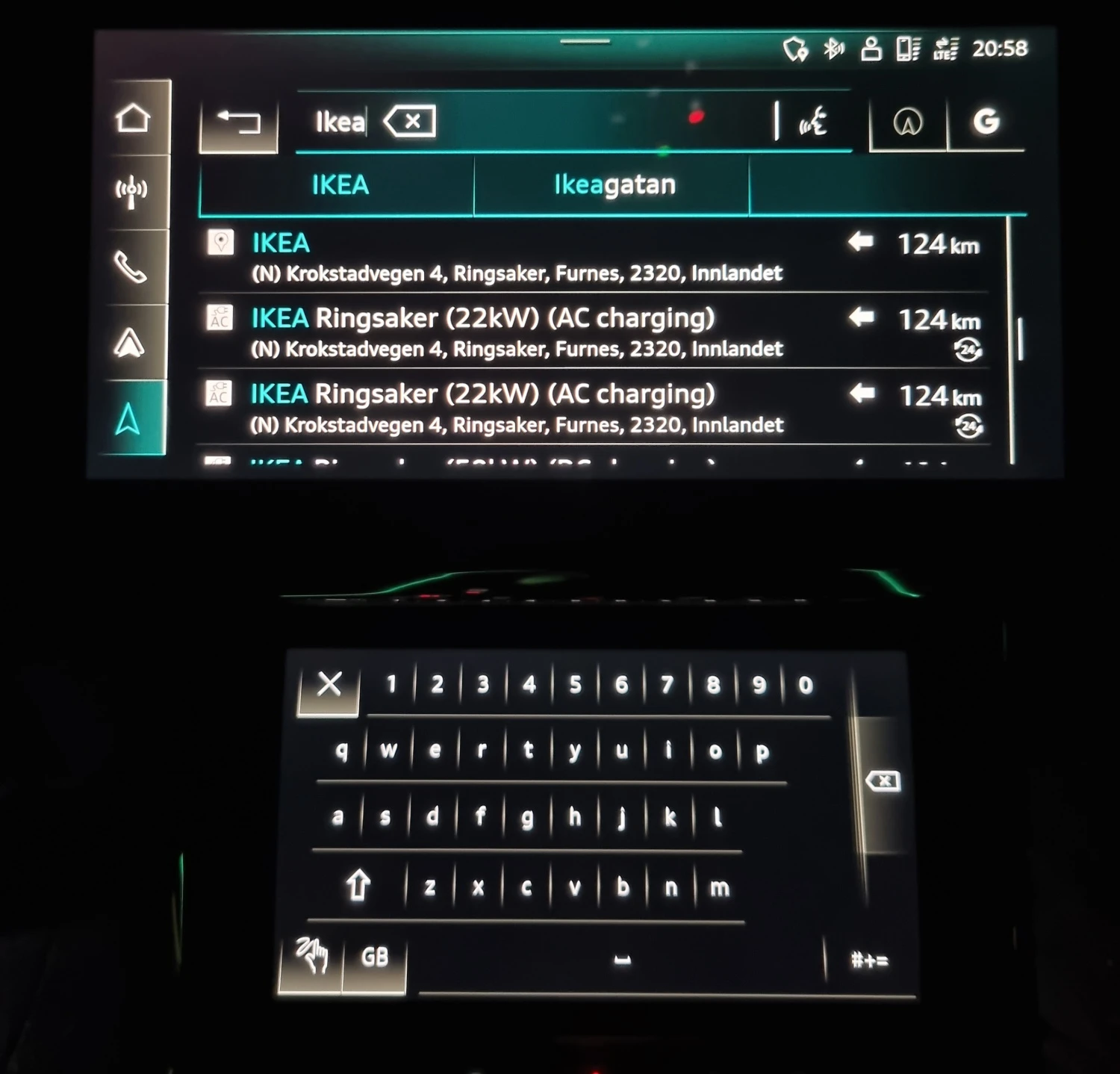 Du kan søke etter interessepunkter, ladere, parkering basert på kartdatabasen Here. Du kan også utføre søk på nett etter interessepunkter.